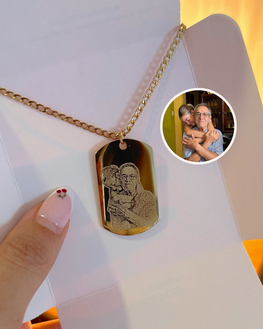 Cadena grabada medalla 15mm con huellas dactilares unisex plateada