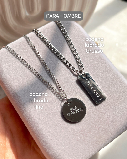 Cadena plateada rectangular 20mm con fotograbado para hombre