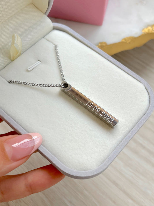 Cadena rectangular plateada de mujer, grabada #B02P-M