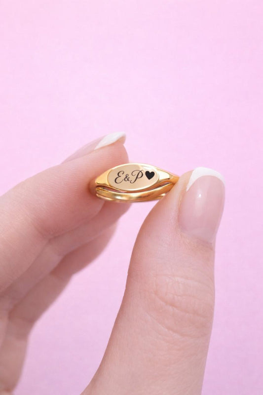 Anillo de promesa/unión unisex dorado grabado láser